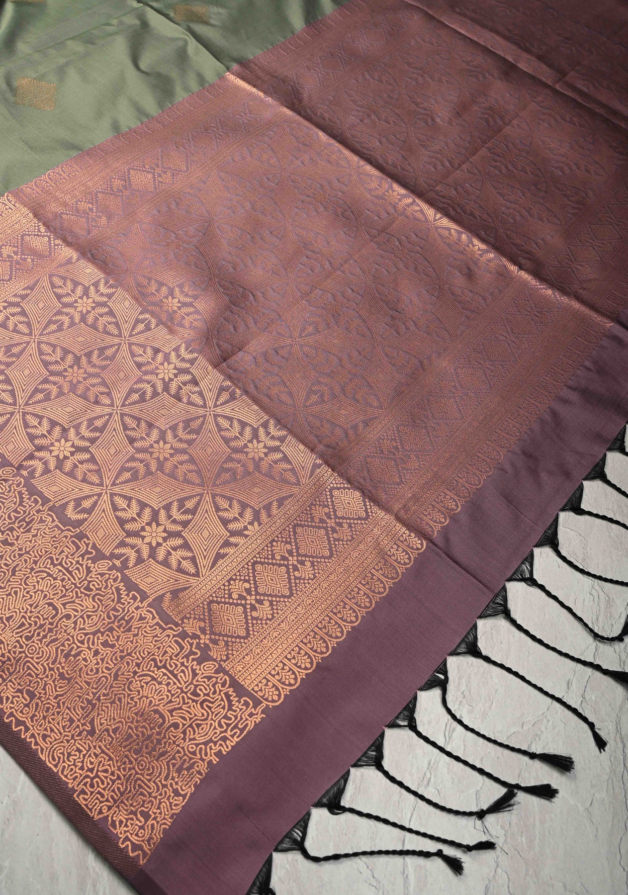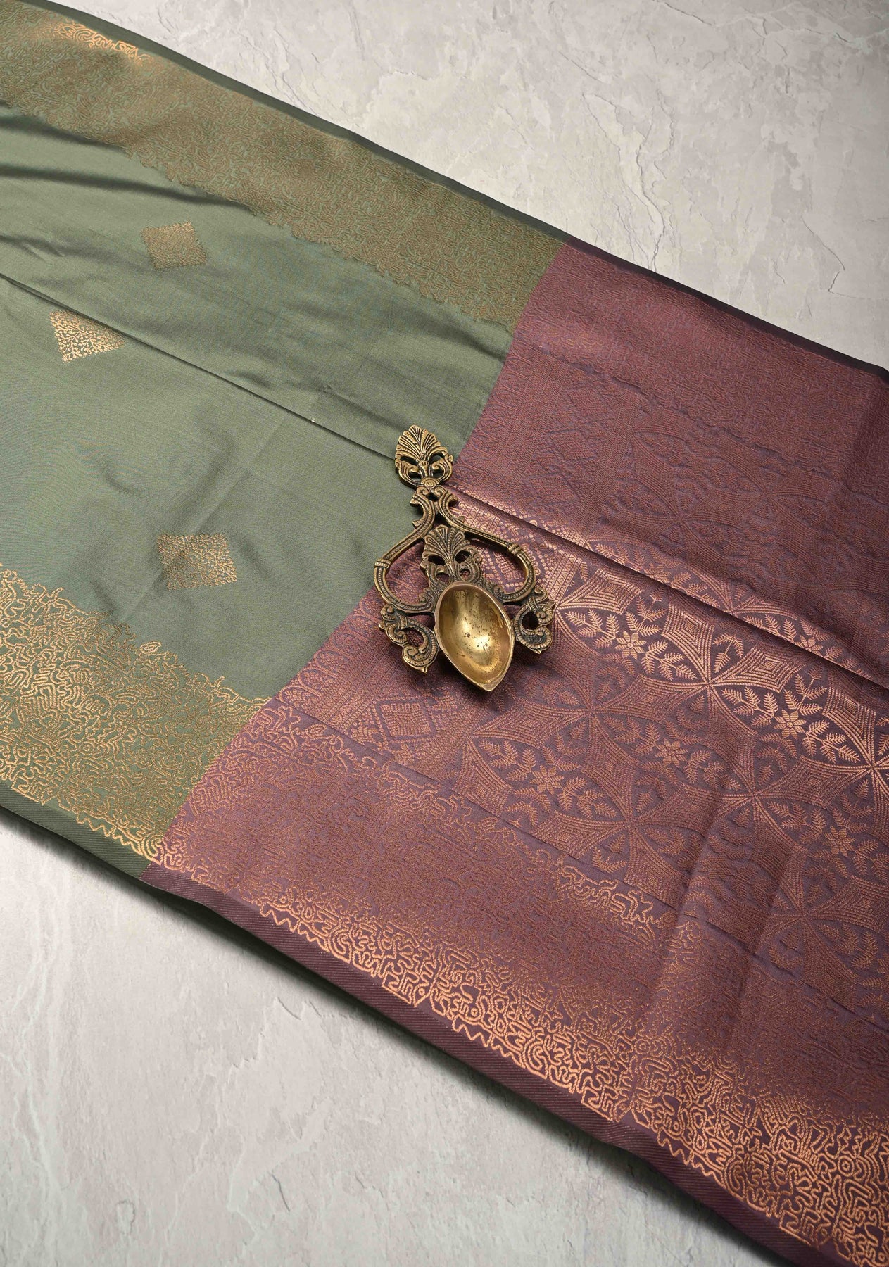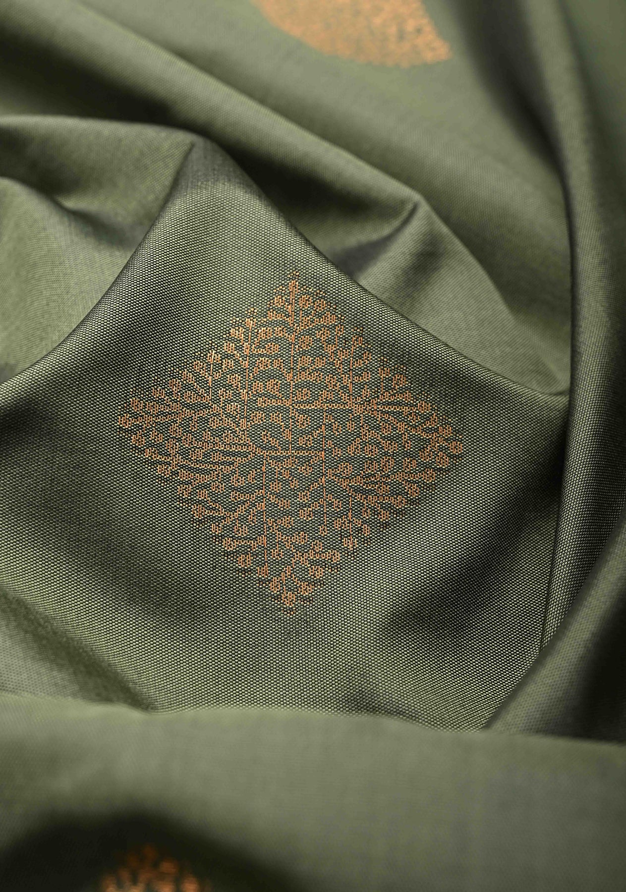 Pickle Green Kanchi Semi Silk Saree with Geometric Motifs and Zari Border